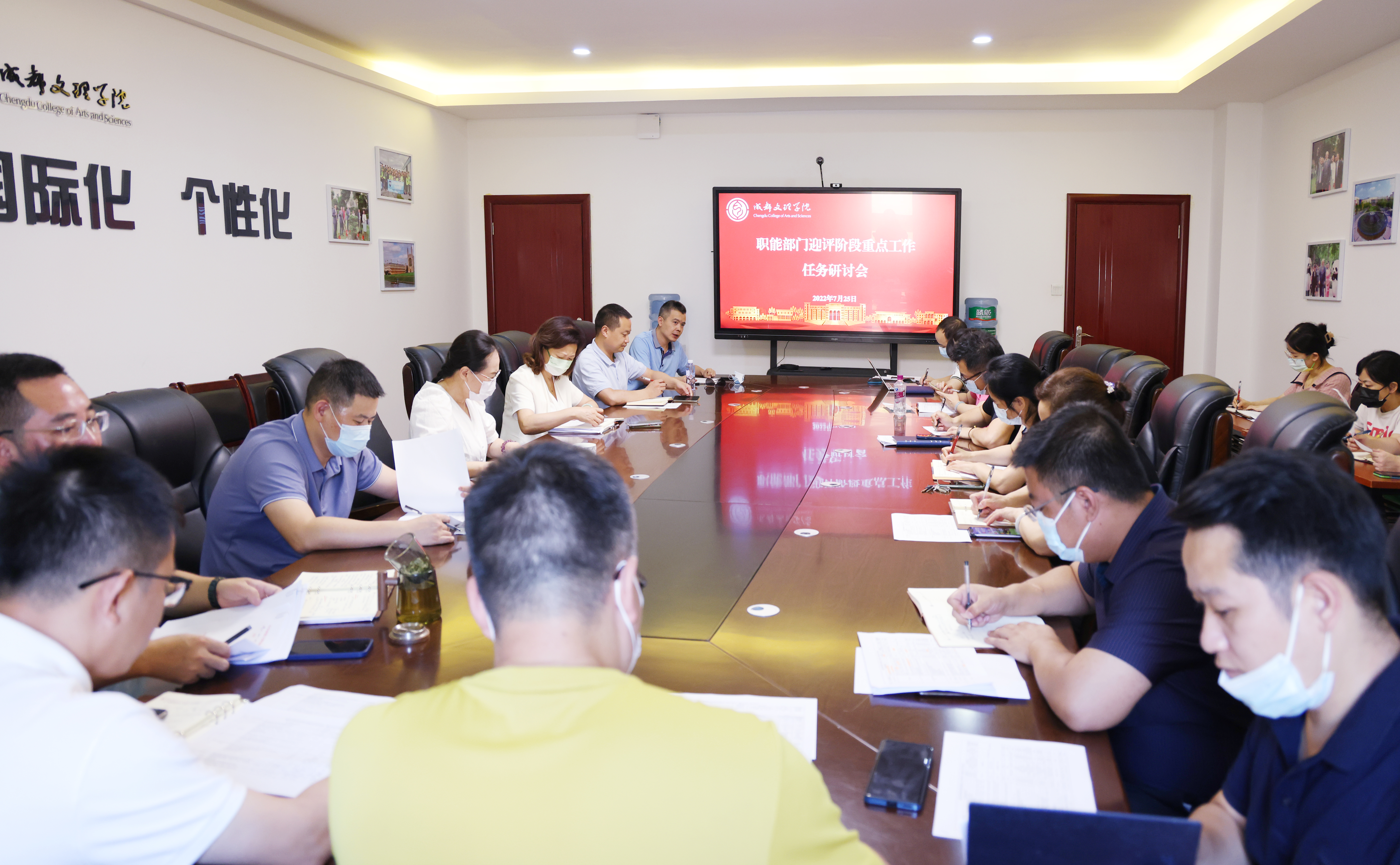 下午学校在行政楼六楼会议室召开职能部门迎评阶段重点工作任务研讨会。各职能部门负责人参加会议。会议指定综合改革与评估处副处长何俊才就成都文理学院迎评阶段重点工作任务书中的具体任务、完成时间、责任部门与督